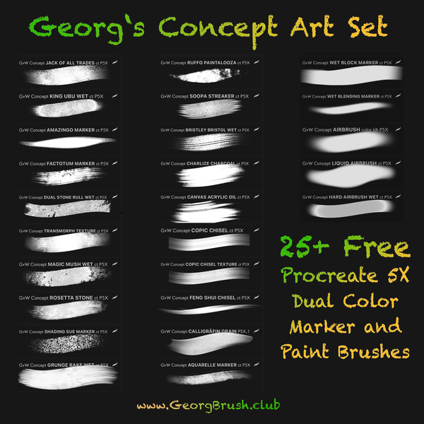 Georg S Brush Club Download 300 Professional Procreate Brushes Harmonic Color Swatches And Practical Drawing Tools For Comics Cartoons Manga Illustrations Painting And Concept Design
